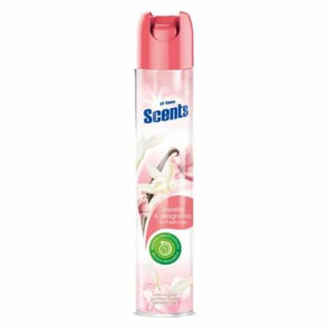 At Home Spray odorizant cameră Vanilie și Magnolie, 400 ml, neutralizează mirosurile și oferă un parfum sofisticat și reconfortant.