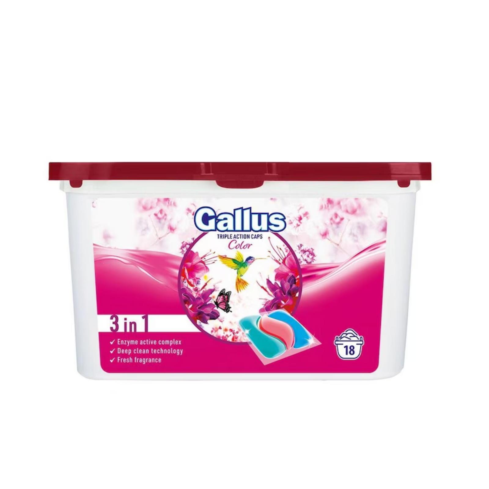 Pentru culori vii și protecție maximă, alege Detergentul de rufe automat Gallus Color 3in1, 18 capsule. Aceste capsule îți oferă o curățare eficientă și protejează culorile la fiecare spălare, menținându-le vibrante.