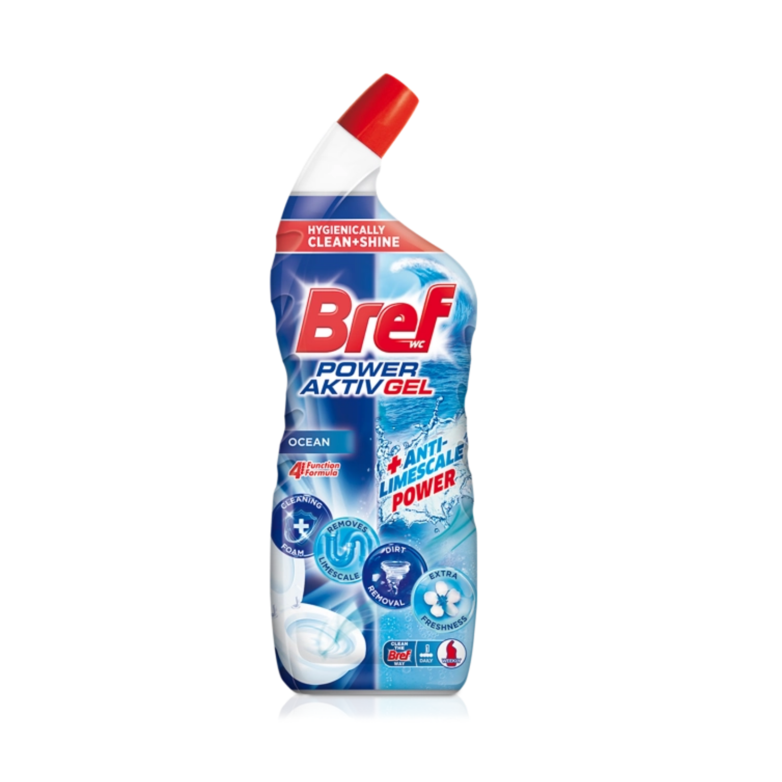 Menține toaleta impecabilă cu Bref – Soluție curățare WC, Power Aktiv Gel, 700 ml. Acest gel puternic îndepărtează murdăria și depunerile de calcar, oferind o curățare profundă și o prospețime de lungă durată. Formula sa avansată luptă împotriva germenilor și bacteriilor, asigurând un mediu igienic și sănătos. Aplicarea sa precisă sub marginea vasului de toaletă face ca fiecare utilizare să fie simplă și eficientă, garantând rezultate strălucitoare.