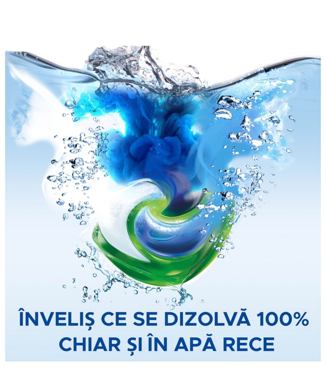 Tehnologia PODS+ - Formula concentrată îndepărtează petele și murdăria, asigurând rezultate excelente de curățare fără a compromite țesăturile.