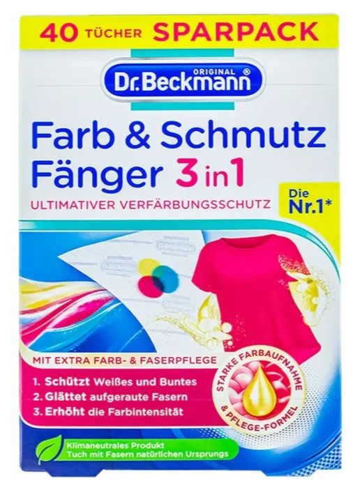 Dr. Beckmann Șervețele Captatoare de Culoare și Murdărie, 40 buc, sunt esențiale pentru protejarea hainelor în timpul spălării. Aceste șervețele speciale absorb și rețin culorile și murdăria eliberate în timpul spălării, prevenind astfel transferul de culori între haine. Pot fi utilizate în orice tip de mașină de spălat și la orice temperatură, asigurând o spălare curată și sigură. Dr. Beckmann Șervețele Captatoare de Culoare și Murdărie sunt ideale pentru menținerea hainelor în cea mai bună formă, spălare după spălare.
